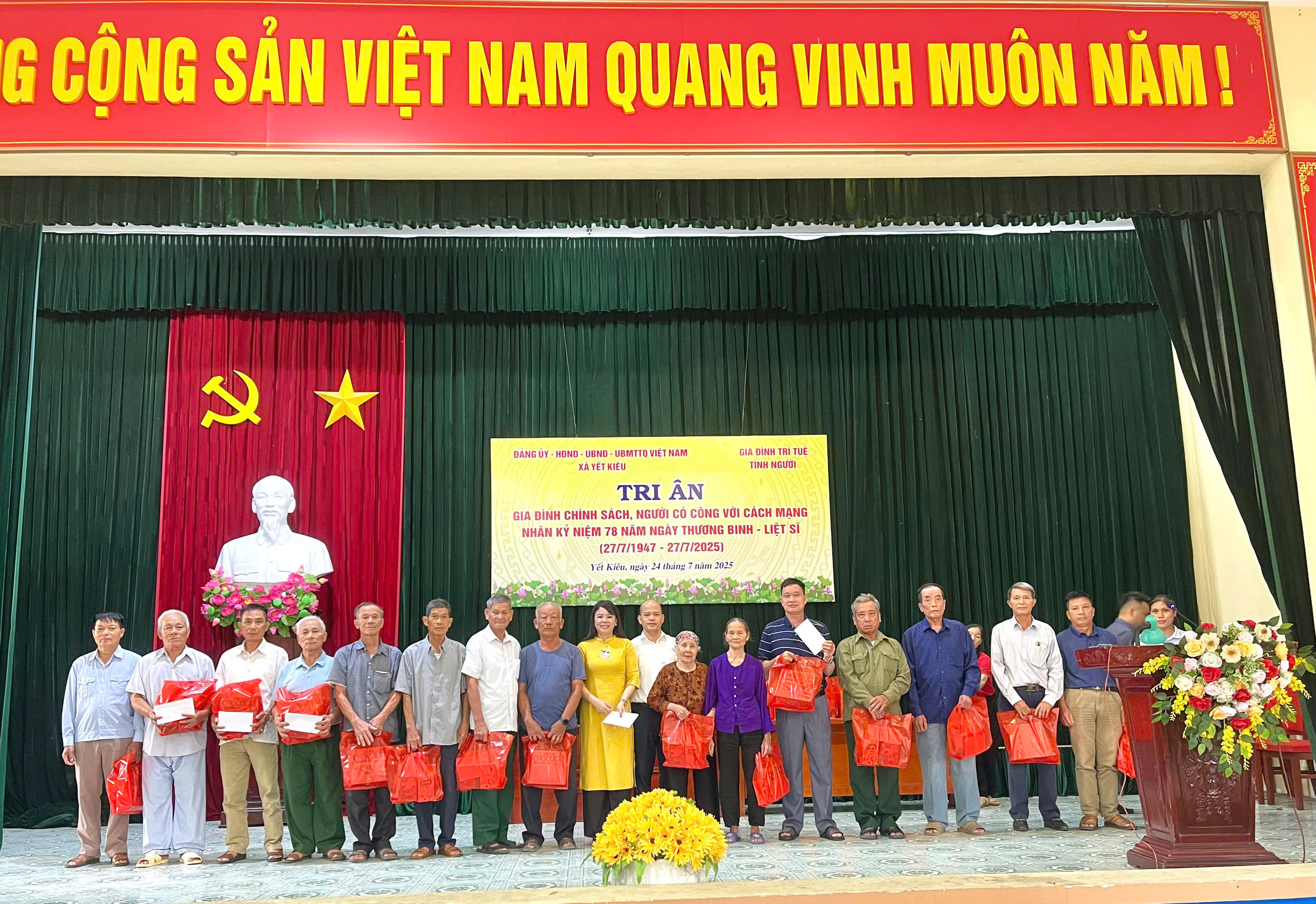 Đảng ủy - HĐND - UBND - UB MTTQ Việt Nam xã phối phối hợp với "Gia đình trí tuệ tình người" tổ chức Chương trình Tri ân người có công với cách mạng, thân nhân các gia đình liệt sỹ, nhân dịp kỷ niệm 78 năm Ngày Thương binh-Liệt sĩ (27/7/1947 – 27/7/2025).