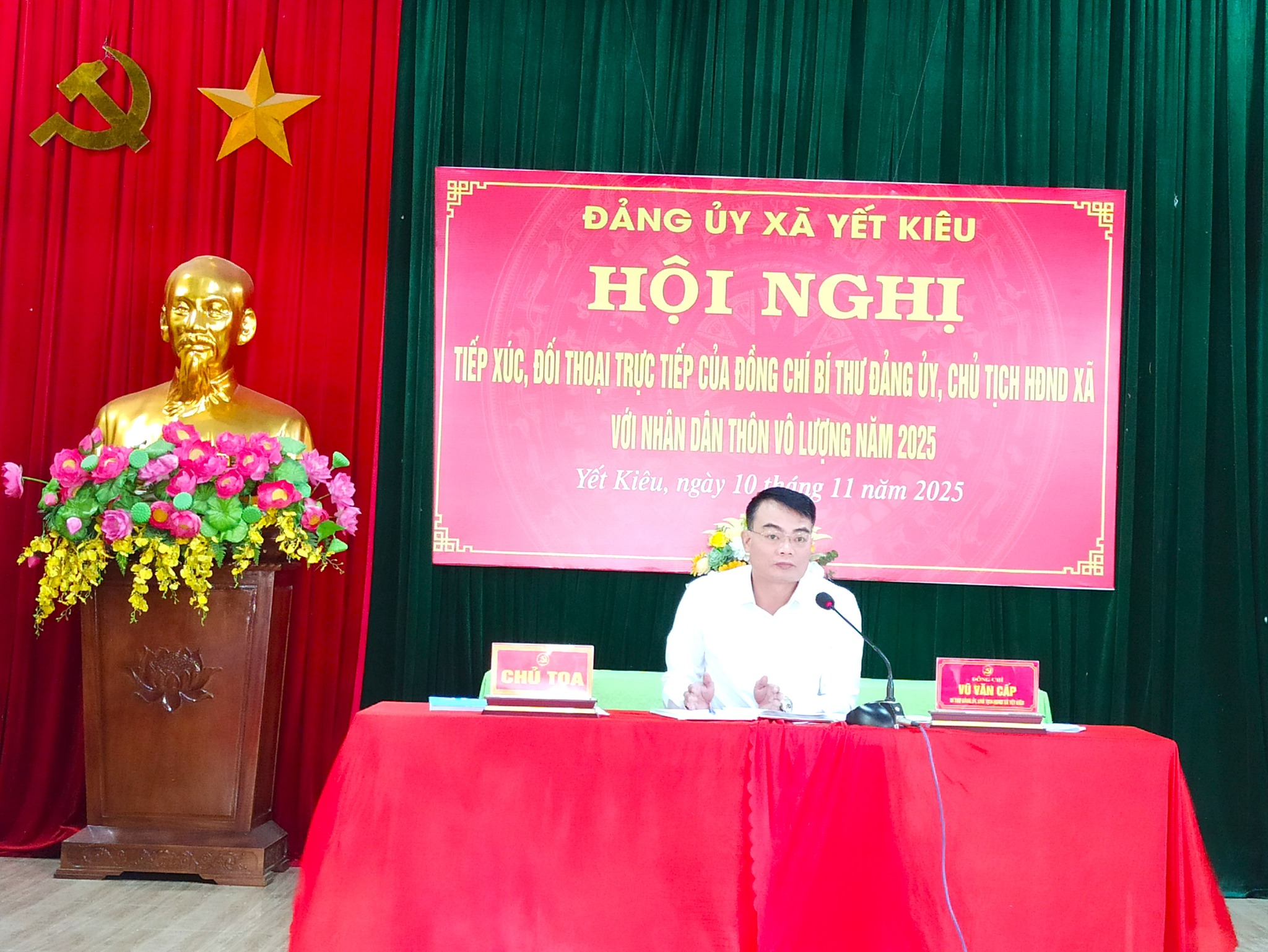 Chiều ngày 10/11, tại Nhà văn hóa thôn Vô Lượng, đồng chí Vũ Văn Cấp – Bí thư Đảng ủy, Chủ tịch Hội đồng nhân dân xã Yết Kiêu đã chủ trì hội nghị tiếp xúc, đối thoại trực tiếp với Nhân dân thôn Vô Lượng.