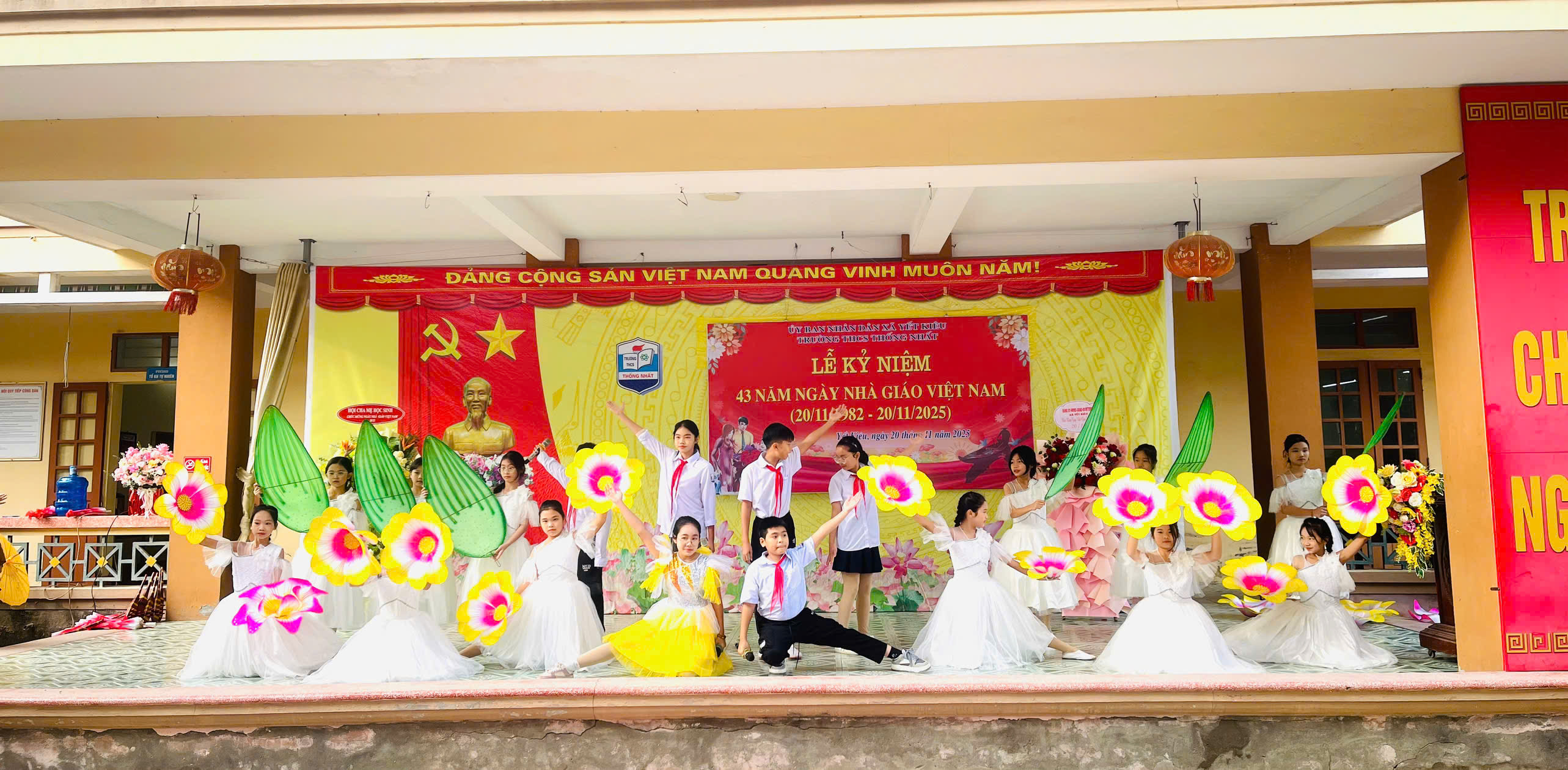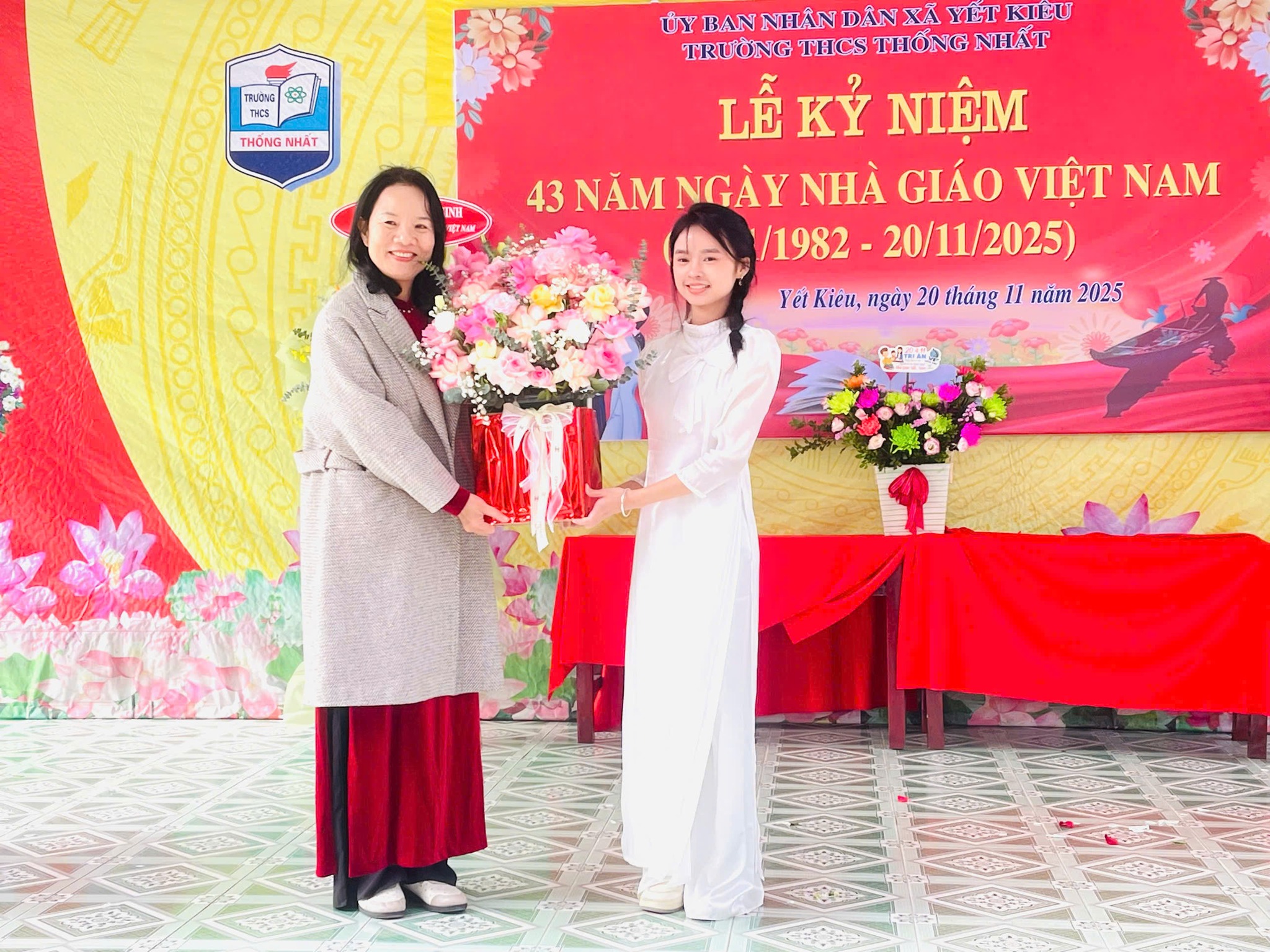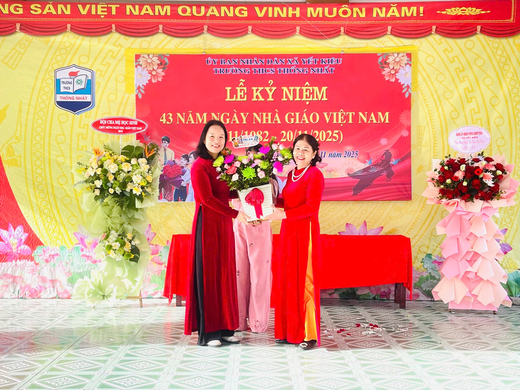 Nhân kỷ niệm 43 năm Ngày Nhà giáo Việt Nam (20/11/1982 - 20/11/2025), sáng 20/11, đồng chí Vũ Văn Cấp - Bí thư Đảng ủy, Chủ tịch HĐND xã Yết Kiêu đến thăm, tặng hoa và chúc mừng tập thể cán bộ, giáo viên, nhân viên Trường THCS Thống Nhất. Cùng dự có đồng chí Nguyễn Thị Hương Lý – Đảng ủy viên, Phó thường trực Ban xây dựng Đảng của xã; lãnh đạo quản lý và giáo viên nhà trường qua các thời kỳ cùng đông đảo giáo viên, học sinh nhà trường.