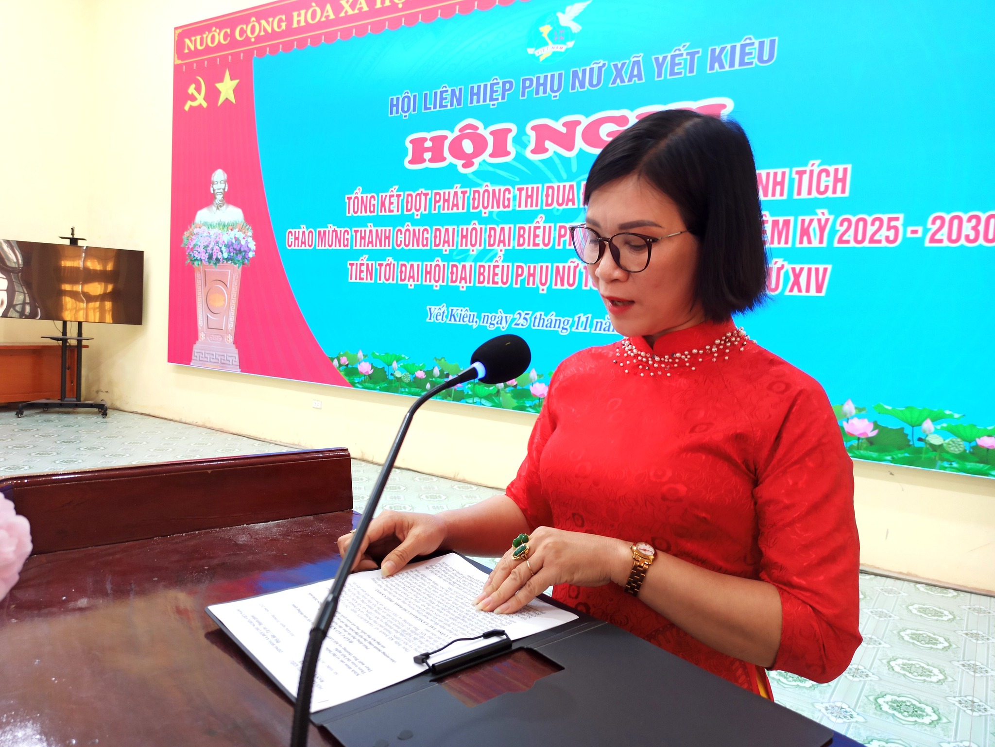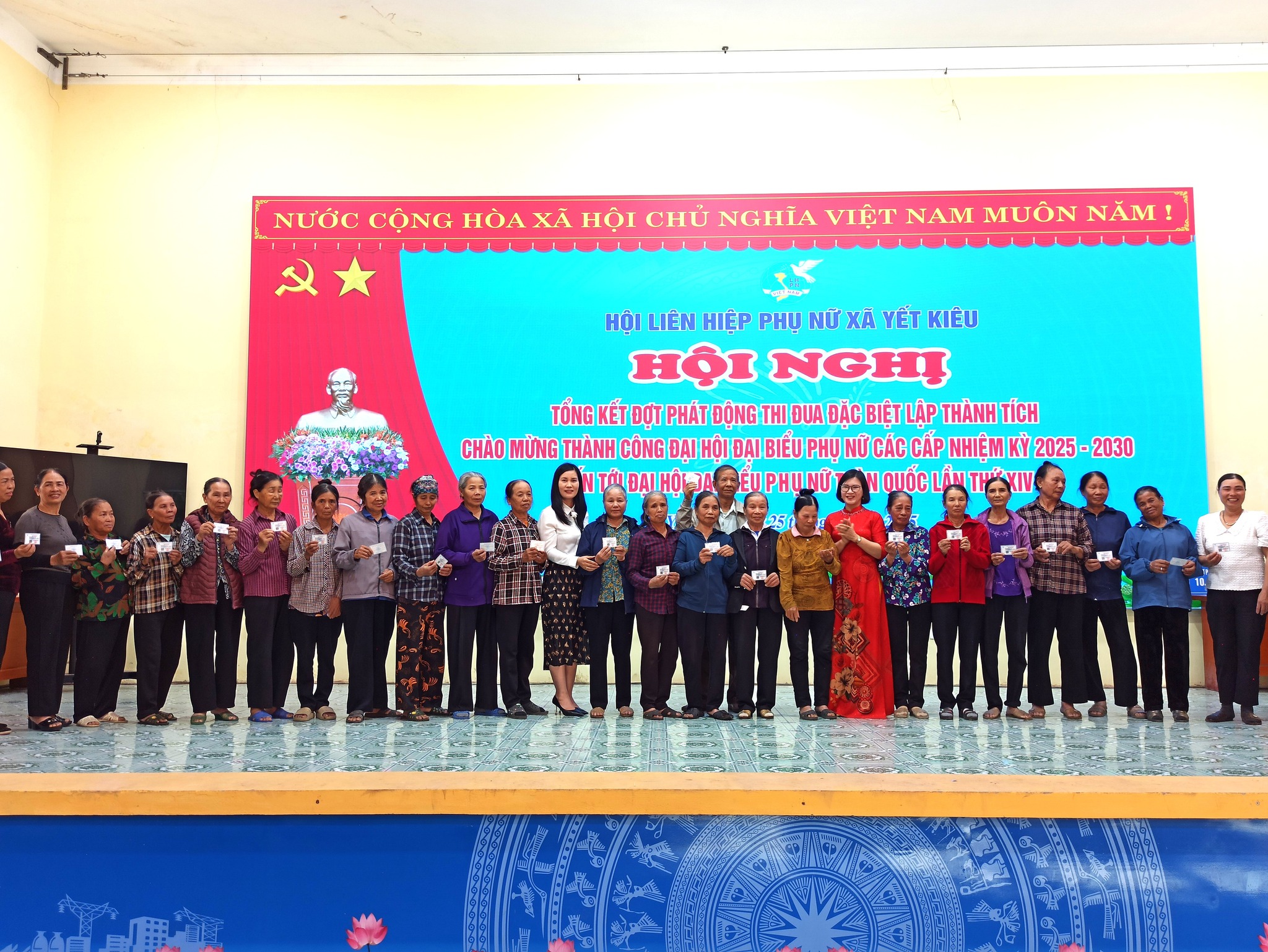 Chiều 25/11, Ban Thường vụ Hội LHPN xã Yết Kiêu tổ chức tổng kết Đợt thi đua đặc biệt lập thành tích chào mừng thành công Đại hội Đại biểu Phụ nữ các cấp nhiệm kỳ 2025-2030 tiến tới Đại hội Đại biểu Phụ nữ toàn quốc lần thứ XIV.