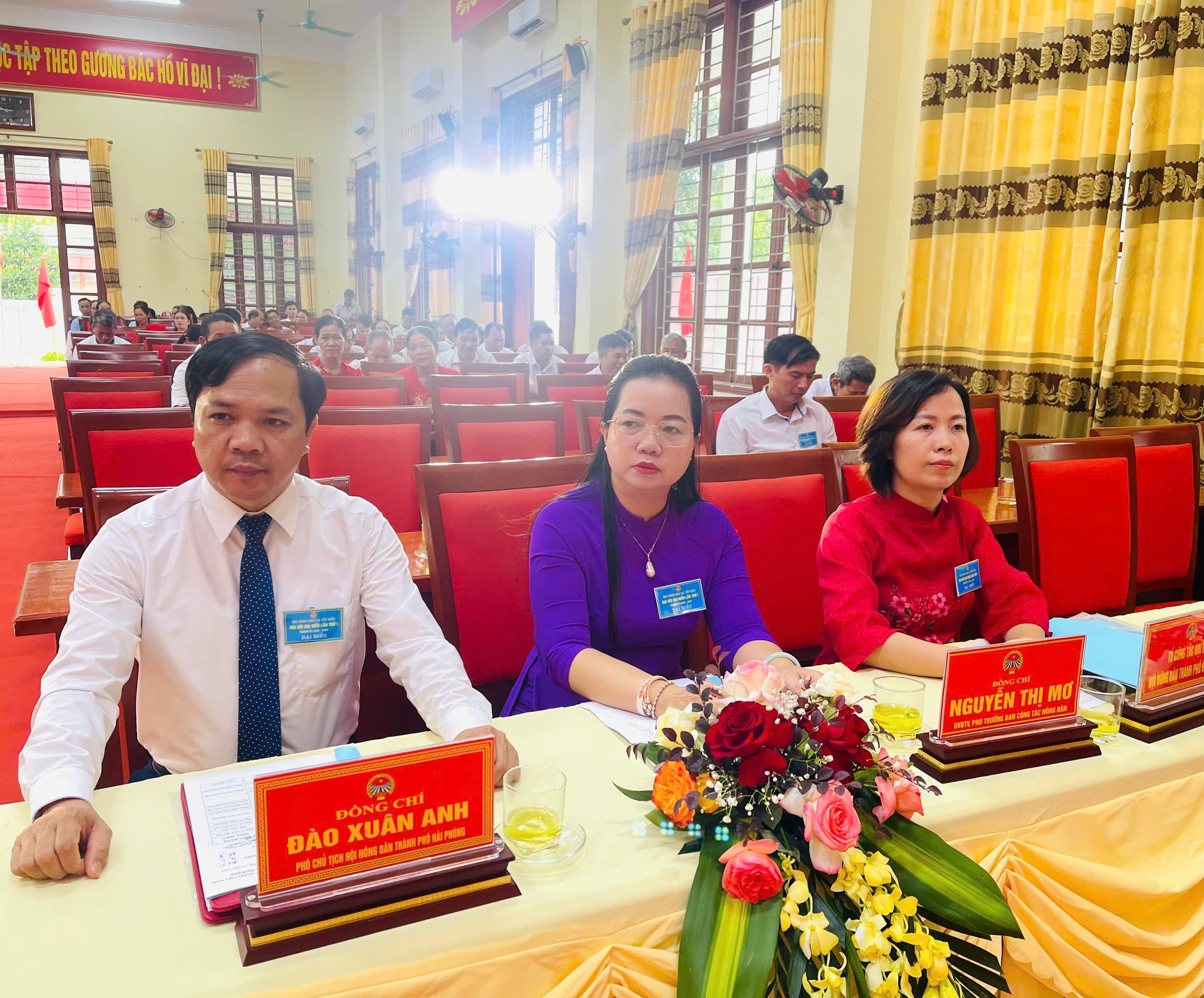 Dự và chỉ đạo Đại hội có đồng chí Đào Xuân Anh - Phó Chủ tịch Hội Nông dân thành phố Hải Phòng; đồng chí Vũ Văn Cấp - Bí thư Đảng ủy, Chủ tịch Hội đồng nhân dân xã; đồng chí Đào Thị Hồng Hạnh – Phó Bí thư Thường trực Đảng ủy, Chủ tịch Ủy ban MTTQ Việt Nam xã; đồng chí Phạm Thị Thu – Phó Bí thư Đảng ủy, Chủ tịch UBND xã. Các đồng chí trong Ban Thường vụ Đảng ủy, lãnh đạo HĐND, UBND, lãnh đạo các cơ quan tham mưu, giúp việc của Đảng ủy, lãnh đạo các phòng chuyên môn của UBND xã. Đặc biệt là sự tham dự của 110 đại biểu là cán bộ, hội viên nông dân tiêu biểu, đại diện cho trên 7.400 cán bộ, hội viên nông dân trong xã.