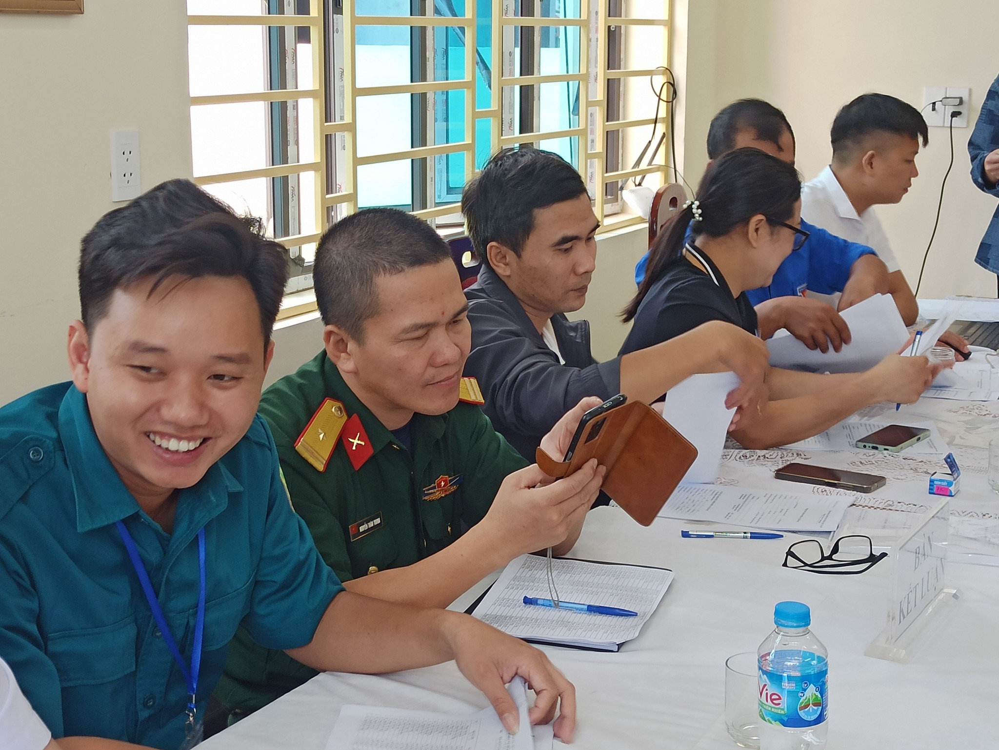 Dự và kiểm tra công tác khám sơ tuyển có đồng chí Phạm Thị Thu – Phó Bí thư Đảng ủy, Chủ tịch UBND, Chủ tịch Hội đồng Nghĩa vụ quân sự xã; đồng chí Đào Thị Hồng Hạnh – Phó Bí thư thường trực Đảng ủy, Chủ tịch Ủy ban MTTQ xã; đồng chí Tăng Văn Nguyên – Đảng ủy viên, Phó Chủ tịch UBND xã.