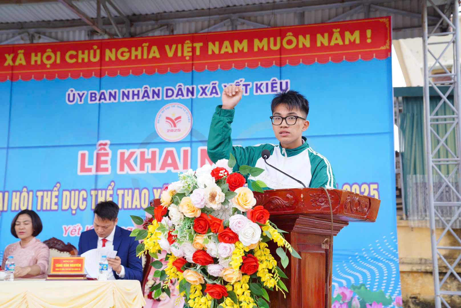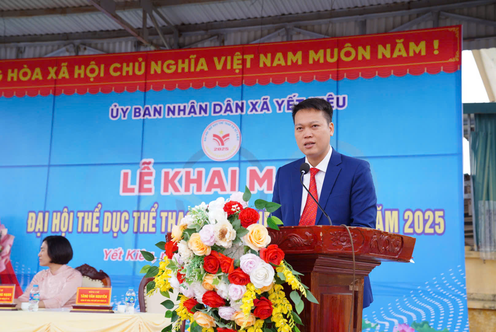Phát biểu khai mạc Đại hội, đồng chí Tăng Văn Nguyên – Phó Chủ tịch UBND xã, Trưởng Ban Tổ chức Đại hội nhấn mạnh: Đại hội TDTT xã Yết Kiêu lần thứ I được tổ chức với tinh thần: “Thể thao – Đoàn Kết – Trung thực – Cao thượng – Tiến bộ”, gắn với phương châm “Khỏe để xây dựng và bảo vệ Tổ quốc, khỏe để xây dựng quê hương Yết Kiêu ngày càng giàu đẹp, văn minh”. Đồng chí cũng mong muốn các vận động viên thi đấu với tinh thần đoàn kết, nhiệt tình, trung thực, cao thượng, phấn đấu đạt thành tích cao, đồng thời lựa chọn được những VĐV xuất sắc nhất tham dự Đại hội TDTT cấp thành phố. Sau đại hội, các cơ sở, các cơ quan, ban ngành của địa phương cần tiếp tục đẩy mạnh xã hội hóa công tác thể dục thể thao, không ngừng củng cố, mở rộng các loại hình câu lạc bộ, luyện tập thể dục thể thao mỗi ngày. Đầu tư xây mới, nâng cấp các công trình thiết chế văn hóa, thể thao; mua sắm trang thiết bị, đáp ứng yêu cầu luyện tập thể dục thể thao của nhân dân, góp phần thúc đẩy phong trào thể dục thể thao xã Yết Kiêu ngày càng phát triển.