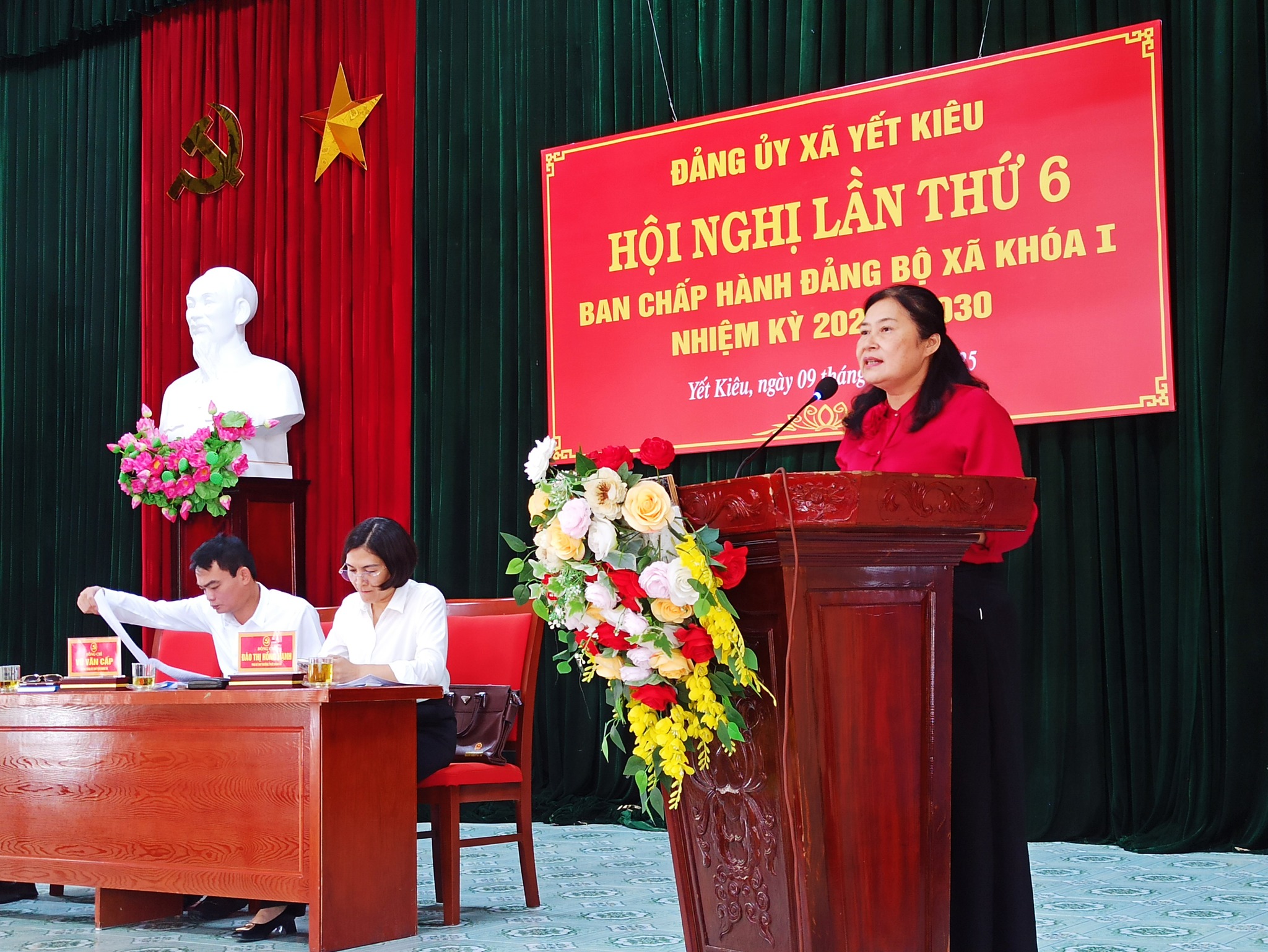 Tại hội nghị, thay mặt Ban Thường vụ, đồng chí Đào Thị Hồng Hạnh - Phó Bí thư Thường trực Đảng uỷ trình bày Tờ trình về kết quả công tác xây dựng Đảng, hoạt động của MTTQ và các đoàn thể Chính trị - Xã hội 9 tháng, nhiệm vụ trọng tâm 3 tháng cuối năm 2025. Theo đó, 9 tháng đầu năm 2025, Đảng ủy xã Yết Kiêu đã tập trung lãnh đạo, chỉ đạo thực hiện hiệu quả nhiệm vụ chính trị, trọng tâm là triển khai mô hình chính quyền địa phương 2 cấp sau sáp nhập. Công tác xây dựng Đảng đạt nhiều kết quả nổi bật: nâng cao chất lượng giáo dục chính trị, tư tưởng; phát triển 13 đảng viên mới, trao tặng 120 Huy hiệu Đảng; cập nhật dữ liệu đảng viên đạt 100%; triển khai nghiêm túc công tác kiểm tra, giám sát, bảo vệ chính trị nội bộ và phòng, chống tham nhũng. Đảng ủy tổ chức thành công Đại hội Đảng bộ xã lần thứ I, nhiệm kỳ 2025–2030; kiện toàn bộ máy tổ chức, phân công nhiệm vụ rõ ràng, bảo đảm hoạt động hiệu lực, hiệu quả. Trung tâm Hành chính công tiếp nhận hơn 2.300 hồ sơ, số hóa 100%. Mặt trận Tổ quốc và các đoàn thể tích cực tuyên truyền, vận động nhân dân đồng thuận thực hiện các chủ trương, phong trào thi đua yêu nước, góp phần củng cố khối đại đoàn kết toàn dân. Ba tháng cuối năm, Đảng ủy tập trung thực hiện Nghị quyết Đại hội, nâng cao hiệu quả tuyên truyền, kiểm tra, giám sát, cải cách hành chính và chuẩn bị tốt bầu cử, đại hội các đoàn thể.
