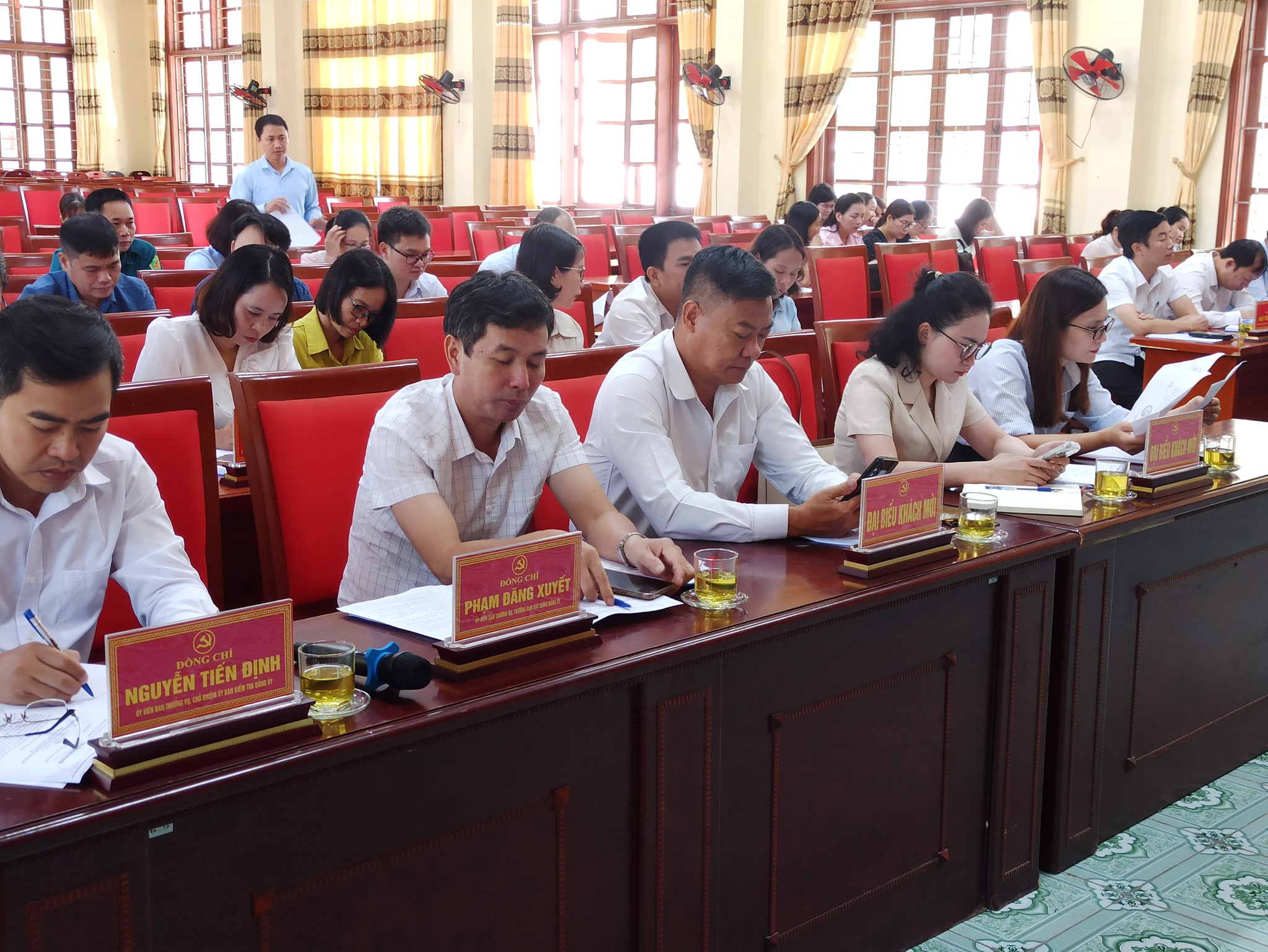 Đồng chí Vũ Văn Cấp - Bí thư Đảng uỷ, Chủ tịch HĐND xã chủ trì hội nghị; đồng chủ trì có đồng chí Đào Thị Hồng Hạnh - Phó Bí thư Thường trực Đảng uỷ xã; đồng chí Phạm Thị Thu - Phó Bí thư Đảng ủy, Chủ tịch UBND xã.