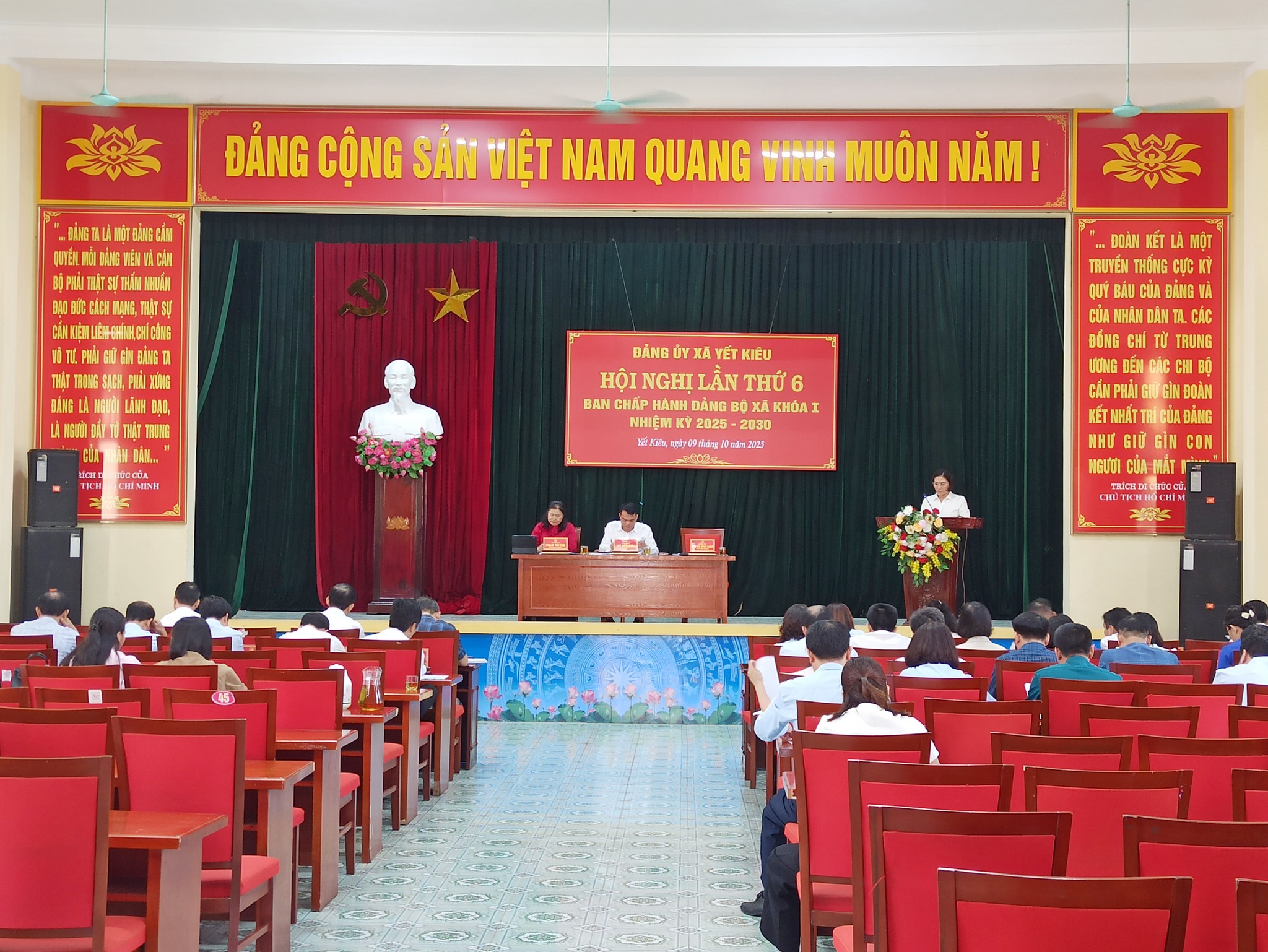 Sáng ngày 9/10, tại Nhà Văn hóa Trung tâm xã Yết Kiêu đã diễn ra Hội nghị lần thứ 6 BCH Đảng bộ xã Khóa I, nhiệm kỳ 2025-2030.
