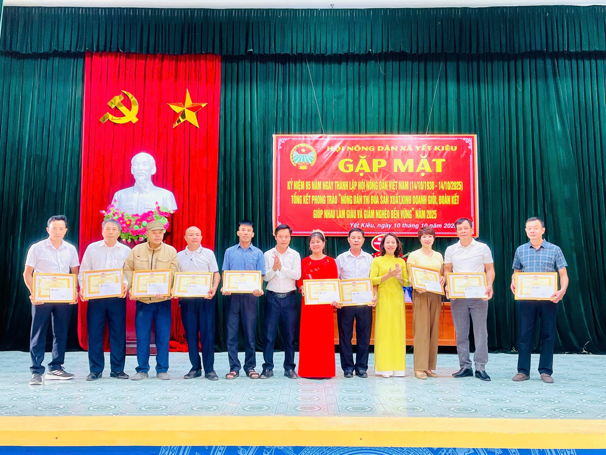 Tại buổi gặp mặt, Ban Thường vụ Hội Nông dân xã Yết Kiêu đã tặng giấy khen và phần thưởng cho 21 hội viên tiêu biểu có thành tích xuất sắc trong phong trào nông dân thi đua sản xuất kinh doanh giỏi, đoàn kết giúp nhau làm giàu và giảm nghèo bền vững năm 2025.