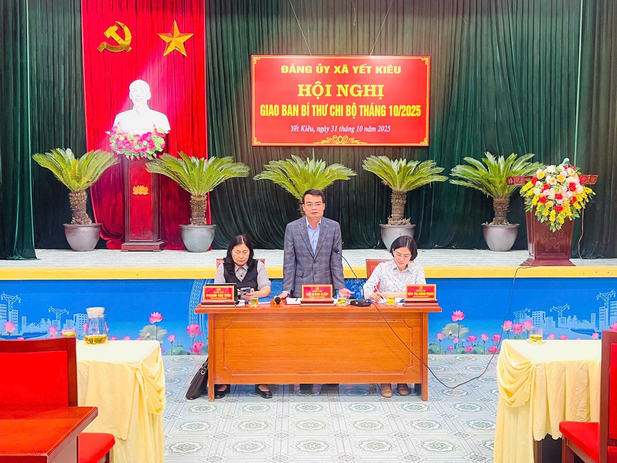 Chiều ngày 31/10, tại Nhà văn hóa trung tâm xã, Đảng ủy xã Yết Kiêu tổ chức Hội nghị giao ban Bí thư chi bộ tháng 10 năm 2025.