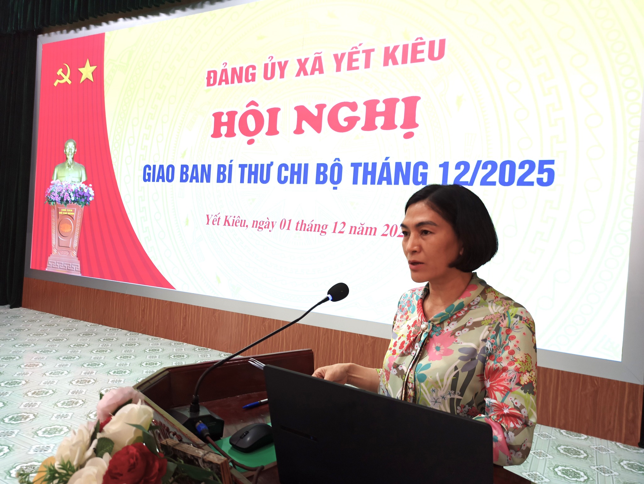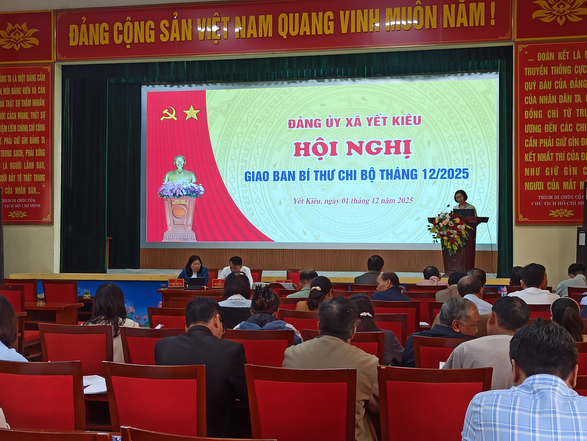 Chiều ngày 1/12, tại Hội trường Nhà văn hóa trung tâm xã Yết Kiêu, Ban Thường vụ Đảng ủy xã triệu tập Hội nghị giao ban Bí thư chi bộ tháng 12/2025.