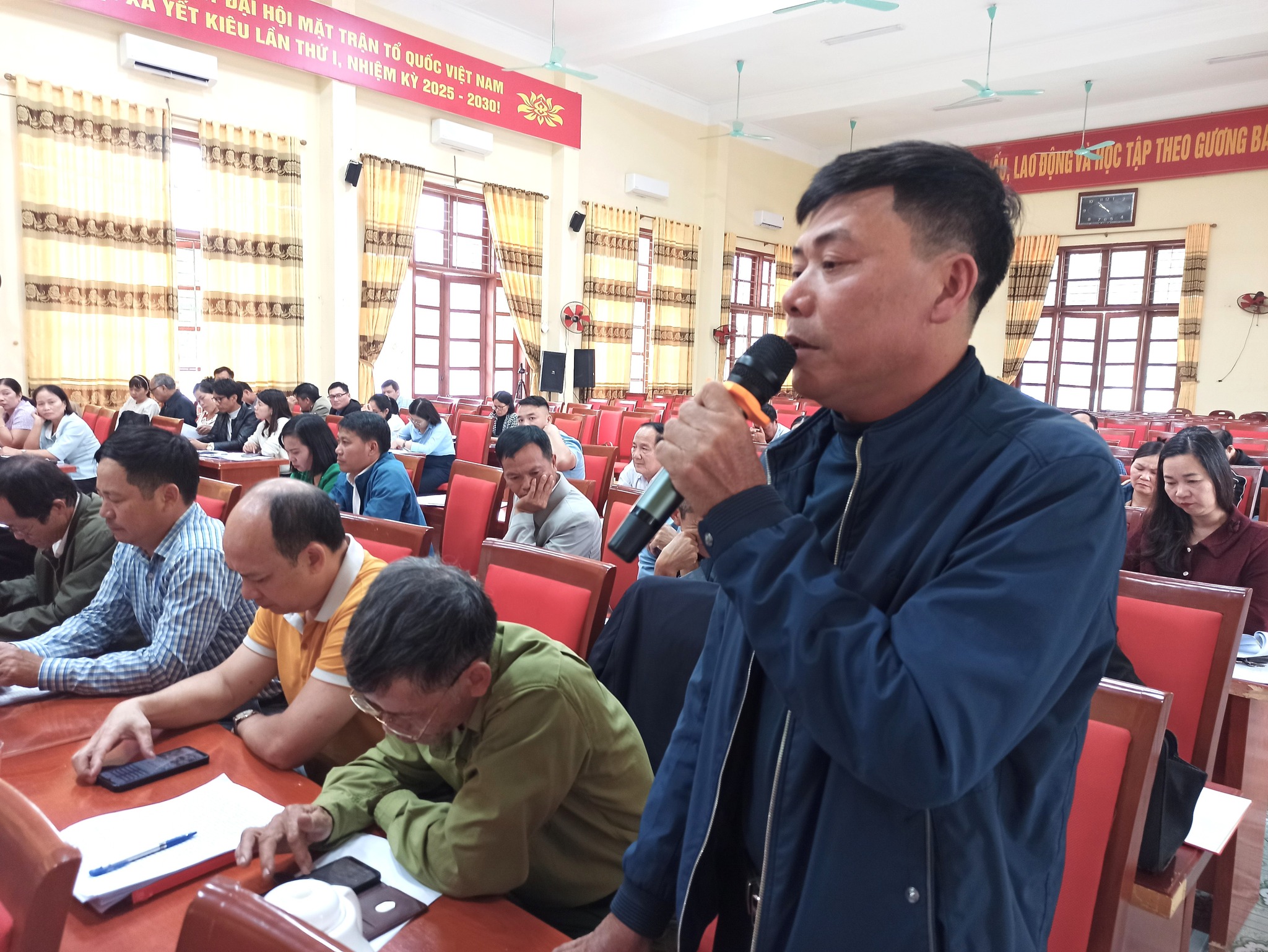 Các đại biểu dự họp đã sôi nổi thảo luận tập trung vào các vấn đề: Đề nghị được cấp báo Nhân dân và báo Hải Phòng cho các chi bộ; Trưởng thôn là cánh tay nối dài của chính quyền, đề nghị năm 2026, xã có thêm kinh phí cho hoạt động của các thôn; Kiểm tra các cống dưới đê để có phương án xử lý những đoạn xung yếu đảm bảo sản xuất nông nghiệp, có kế hoạch nạo vét hệ thống kênh mương thủy lợi; Đề nghị xã đầu tư cho mỗi thôn xe chở rác để đảm bảo môi trường nông thôn; Sản lượng thủy sản nuôi ngoài bãi sông bị sụt giảm từ cơn bão Yagi năm 2024, đề nghị giảm mức thu đối với các hộ nhận đấu thầu nuôi trồng thủy sản; Một số tuyến kênh bị ô nhiễm nghiêm trọng ảnh hưởng sâu sắc đến sản xuất rau màu vụ đông đề nghị có giải pháp triệt để; đề nghị MTTQ kiện toàn Chi hội Người cao tuổi thôn để thực hiện nhiệm vụ…