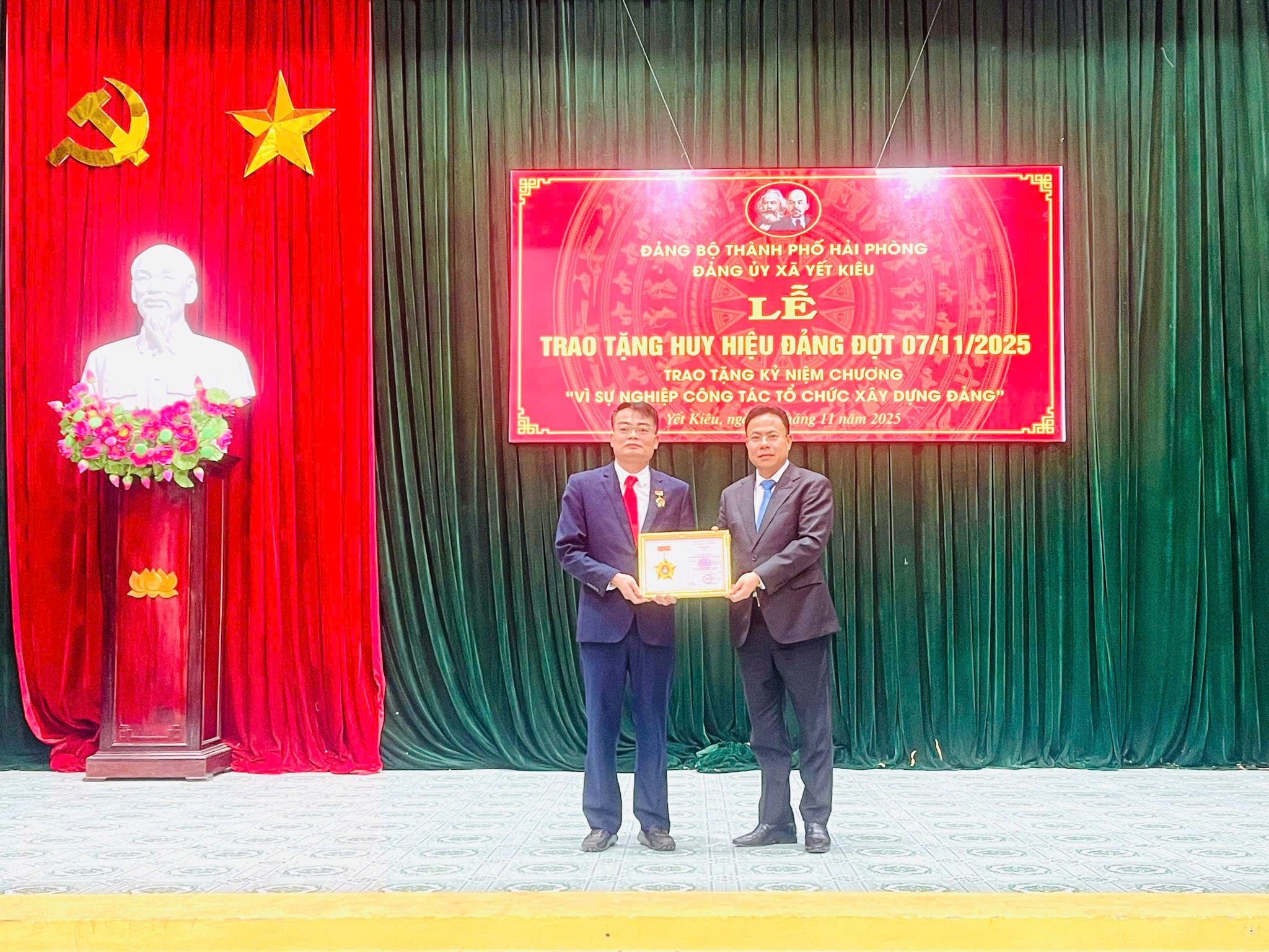 ĐẢNG ỦY XÃ YẾT KIÊU TỔ CHỨC LỄ TRAO TẶNG HUY HIỆU ĐẢNG VÀ TRAO TẶNG KỶ NIỆM CHƯƠNG VÌ SỰ NGHIỆP CÔNG TÁC TỔ CHỨC XÂY DỰNG ĐẢNG