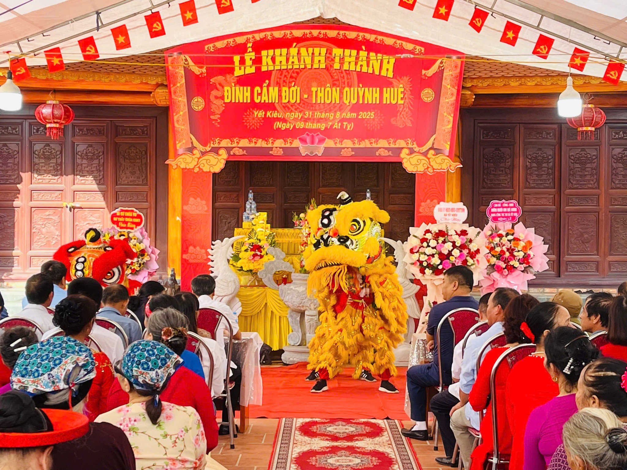 Trong không khí cùng cả nước chào mừng kỷ niệm 80 năm Quốc khánh nước Cộng hòa XHCN Việt Nam 2/9/1945-2/9/2025. Được sự đồng ý của Đảng ủy, UBND xã, Phòng Văn hóa – Xã hội. Sáng 31/8/2025 cấp ủy, chính quyền, Ban công tác mặt trận thôn và nhân dân thôn Quỳnh Huê long trọng tổ chức lễ khánh thành Đình Cẩm Đới ( Đình Thọ Xương) thôn Quỳnh Huê xã Yết Kiêu.
