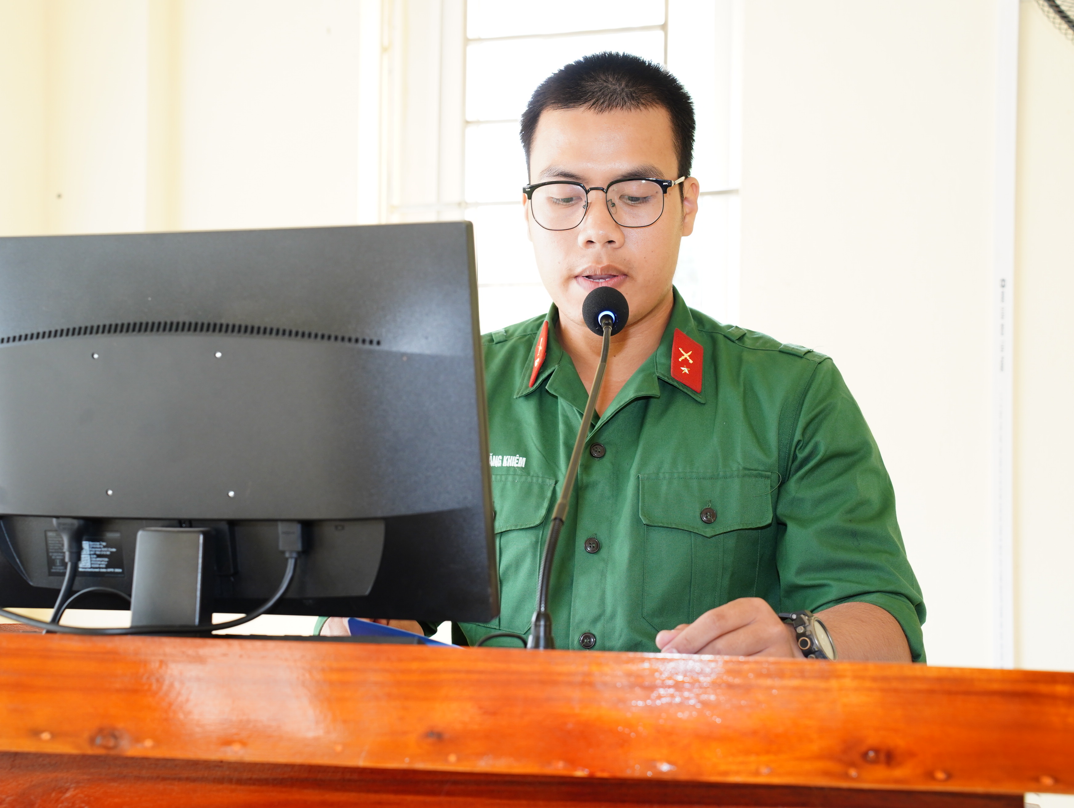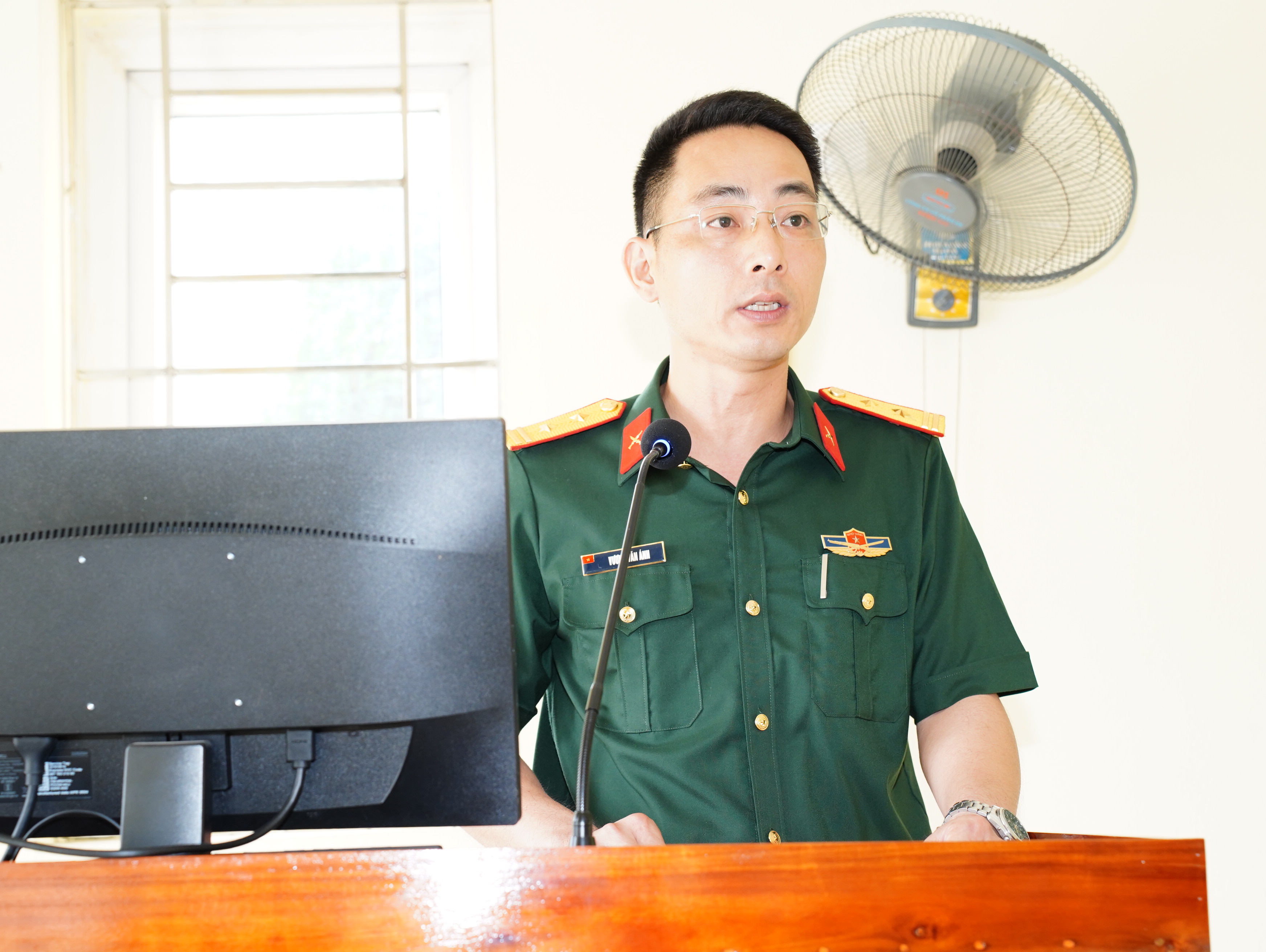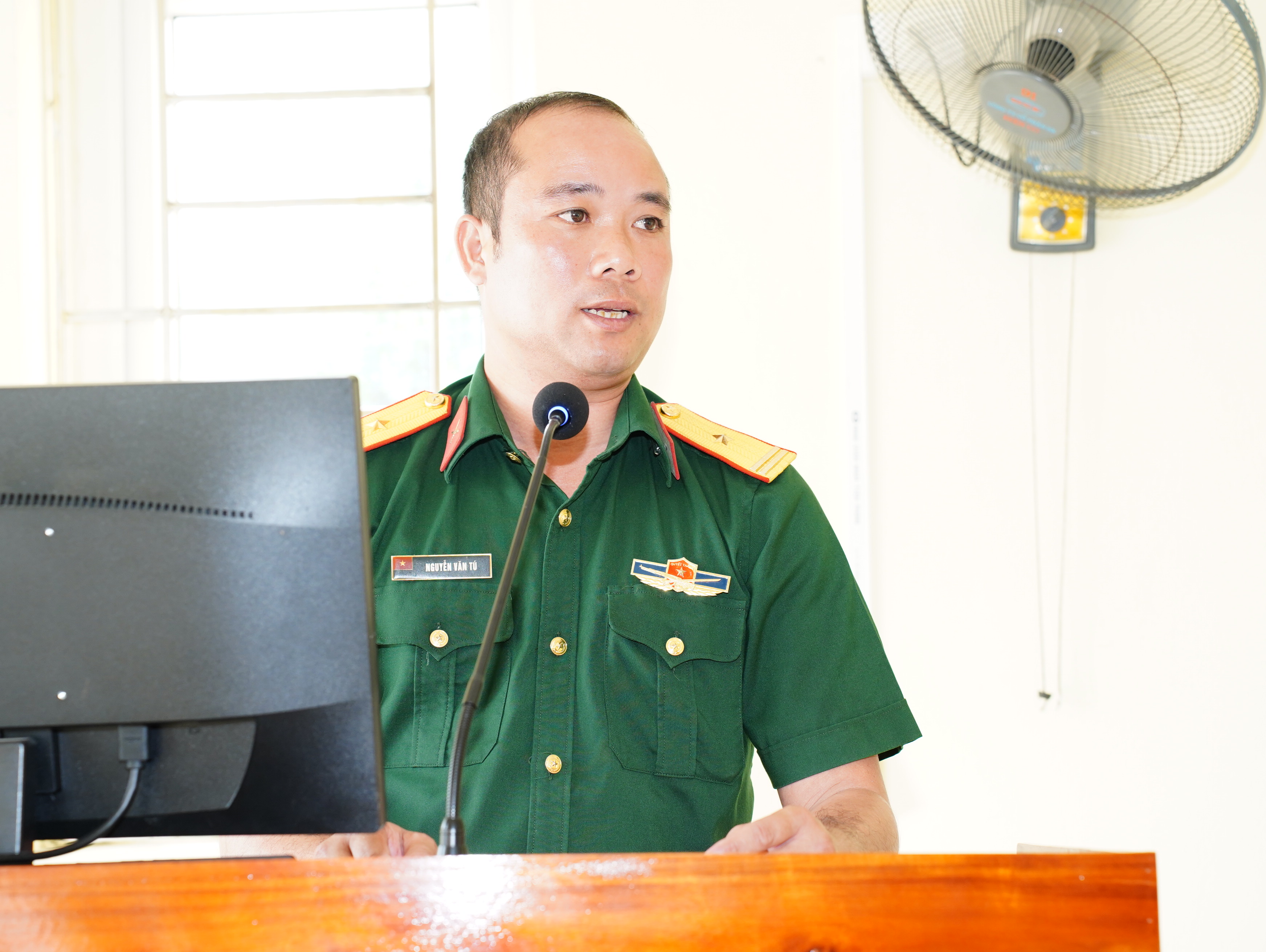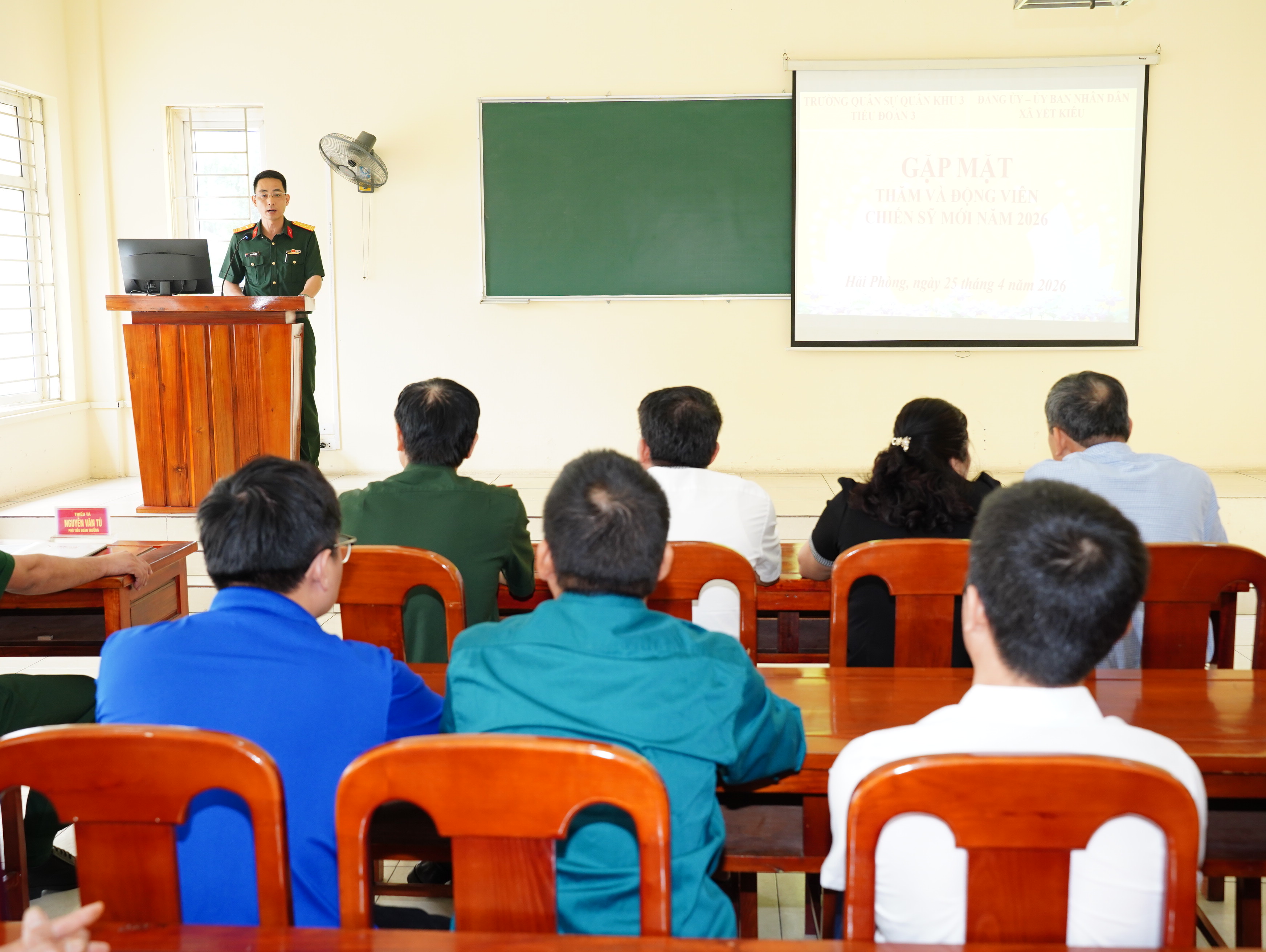 Thay mặt cấp ủy, chính quyền địa phương, Bí thư Đảng ủy Vũ Văn Cấp bày tỏ cảm ơn Đảng ủy, Ban Giám hiệu nhà trường, Ban Chỉ huy Tiểu đoàn, Đại đội, Trung đội đã tận tình chỉ bảo, chăm lo và tạo mọi điều kiện tốt nhất để con em quê hương Yết Kiêu được rèn luyện, học tập và trưởng thành. Đồng chí tự hào khi thấy các tân binh con em quê hương nhanh chóng bắt nhịp với môi trường quân ngũ, tác phong chững chạc, nội vụ gọn gàng, tinh thần phấn khởi và ý chí quyết tâm cao. Khẳng định quê hương và gia đình luôn theo dõi từng bước đi, sự trưởng thành của các tân binh. Bí thư Đrng ủy xã bày tỏ tin tưởng rằng các tân binh con em quê hương sẽ tiếp tục phát huy truyền thống cách mạng của quê hương Yết Kiêu anh hùng, không ngại khó, không ngại khổ; Chấp hành nghiêm kỷ luật Quân đội, quy định của đơn vị và hoàn thành xuất sắc nội dung, chương trình huấn luyện chiến sĩ mới; Đoàn kết, thương yêu, giúp đỡ lẫn nhau như anh em một nhà, xứng danh “Bộ đội Cụ Hồ”. Về phía địa phương, sẽ thực hiện tốt chính sách Hậu phương Quân đội, quan tâm chăm lo đời sống các gia đình quân nhân để các quân nhân yên tâm học tập, rèn luyện hoàn thành nghĩa vụ cao cả mà cấp ủy đảng, chính quyền và nhân dân xã nhà giao phó. Mong rằng, sau khi hoàn thành ngĩa vụ quân sự, các đồng chí sẽ trở về với một bản lĩnh chính trị vững vàng, một sức khỏe dẻo dai để tiếp tục đóng góp xây dựng quê hương giàu đẹp.