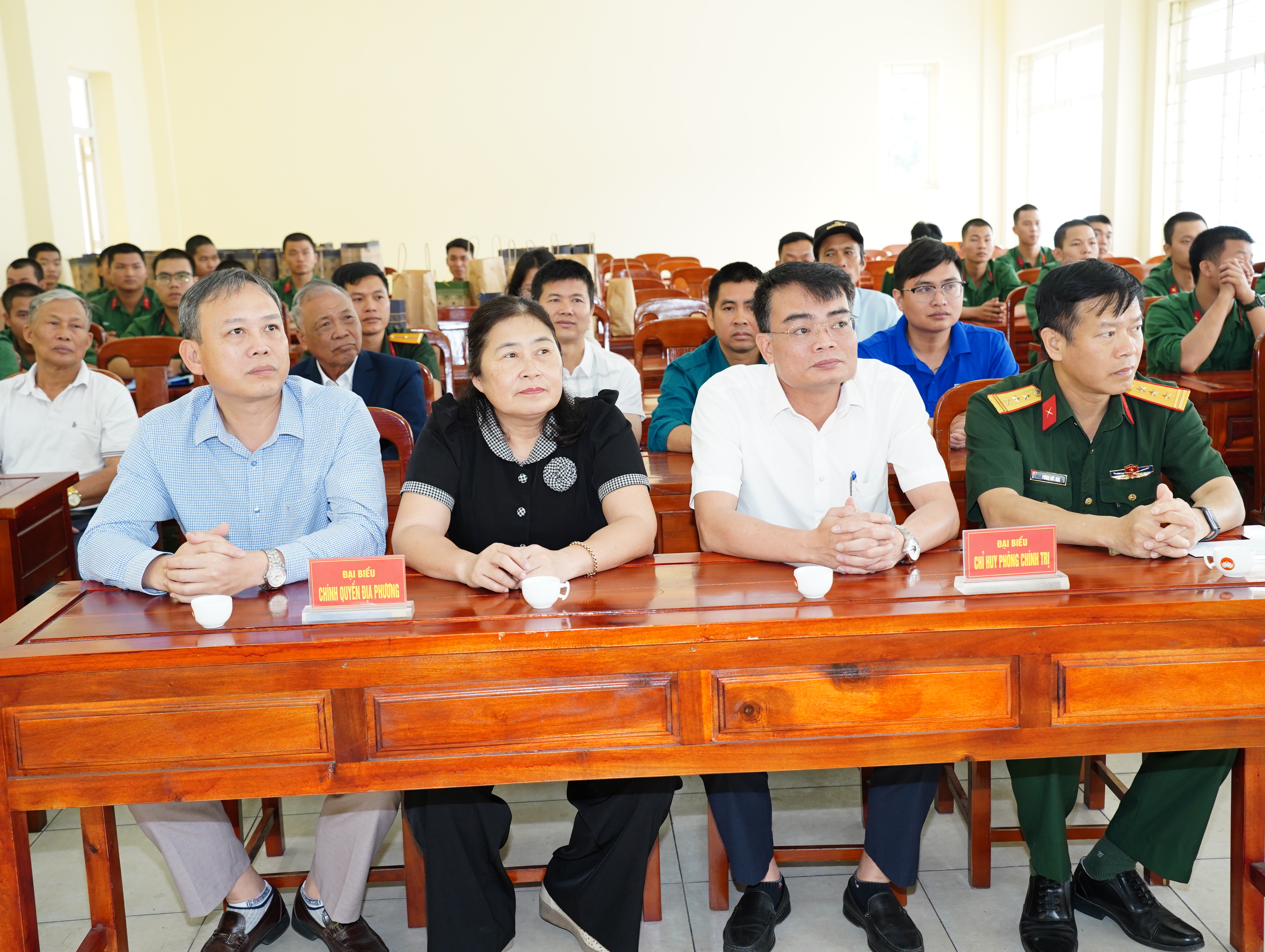 Tham gia đoàn có các đồng chí: Vũ Văn Cấp – Bí thư Đảng ủy, Chủ tịch HĐND xã; Phạm Thị Thu – Phó Bí thư Đảng ủy, Chủ tịch UBND xã; Nguyễn Hữu Biên - Ủy viên BTV Đảng ủy, Phó Chủ tịch HĐND xã; lãnh đạo các ban, ngành, đoàn thể, Ban chỉ huy quân sự, đại diện bí thư chi bộ, trưởng thôn và người nhà tân binh.