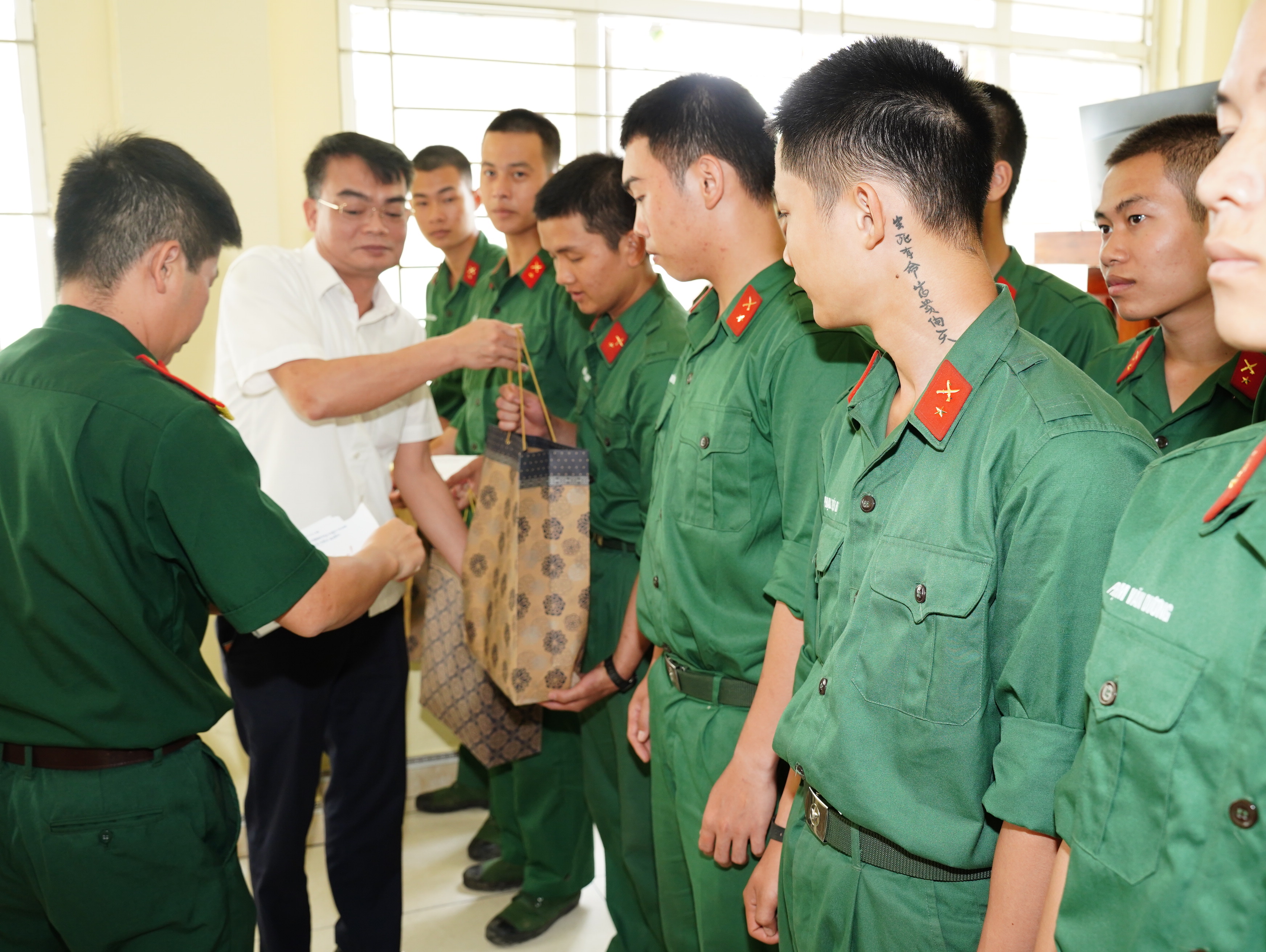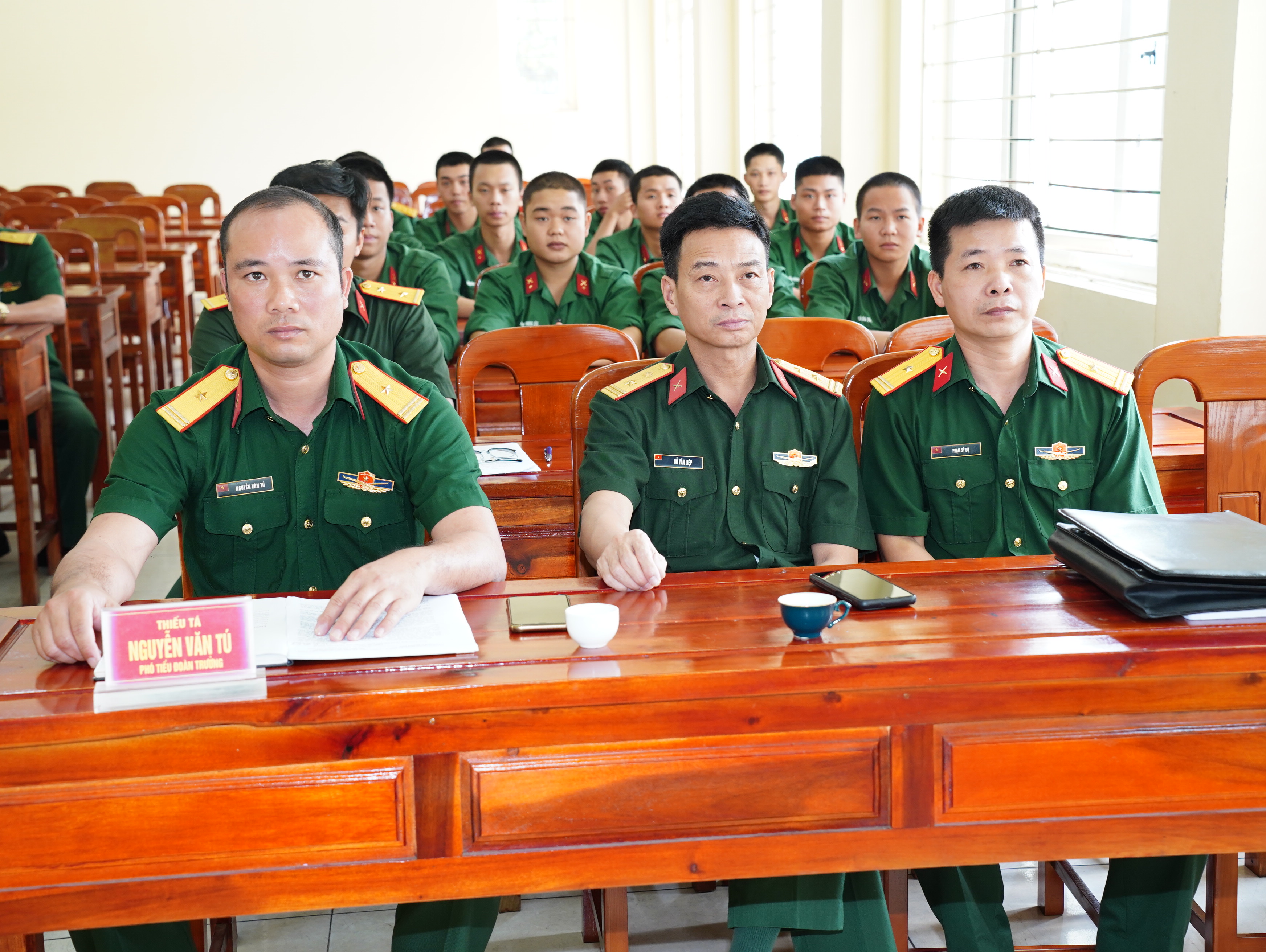 Tiếp đoàn có Thiếu tá Nguyễn Văn Tú – Phụ trách Tiểu đoàn trưởng cùng đại diện cấp ủy, chỉ huy Đại đội 6, Đại đội 7 và các tân binh con em quê hương Yết Kiêu.