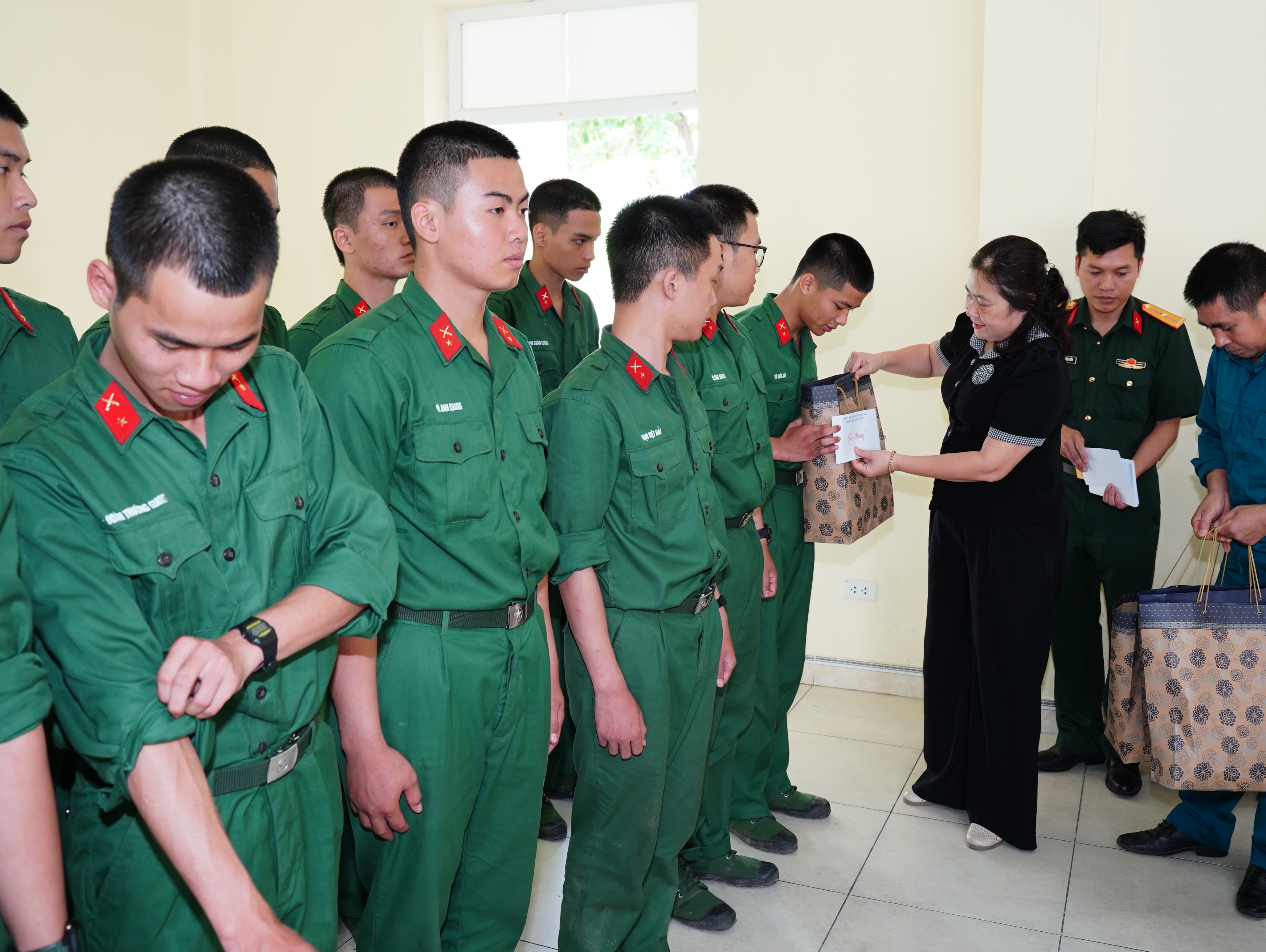 Nhân dịp này, các đồng chí lãnh đạo Đảng ủy, HĐND, UBND xã Yết Kiêu đã tặng quà cho lãnh đạo Tiểu đoàn, Đại đội trưởng và 28 tân binh con em quê hương Yết Kiêu đang huấn luyện tại trường. Đoàn công tác cũng trực tiếp tới thăm nhà bếp, phòng ăn và phòng ngủ của các chiến sĩ./.